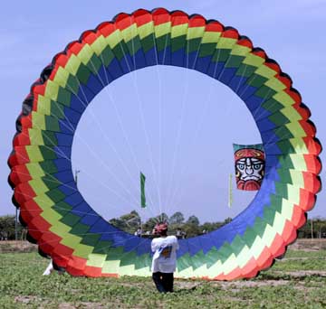 12月7日,在距柬埔寨首都金邊西北300公里的暹粒省舉辦的風(fēng)箏節(jié)上,一名男子在準(zhǔn)備放風(fēng)箏。