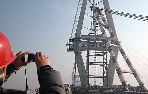 2月6日,杭州灣跨海大橋北航道橋工程正式進(jìn)入鋼箱梁安裝施工階段,首節(jié)鋼箱梁被緩緩吊裝至預(yù)定位置。據(jù)了解,北航道橋總共需要安裝67節(jié)鋼箱梁,預(yù)計(jì)將于今年6月份全部竣工。