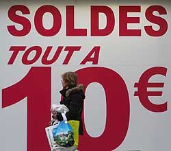 法國的打折期分為夏季和冬季兩個階段。夏季打折期一般在7月中旬至8月中旬,冬季打折期多在1月中旬至2月中旬。在這兩個時間段,法國全國幾乎所有商店都參與打折活動,許多商品打?qū)φ,今年有些商品更是“狠至”兩折?BR>