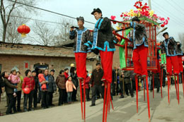 河南萬南村村民表演“高抬花轎”