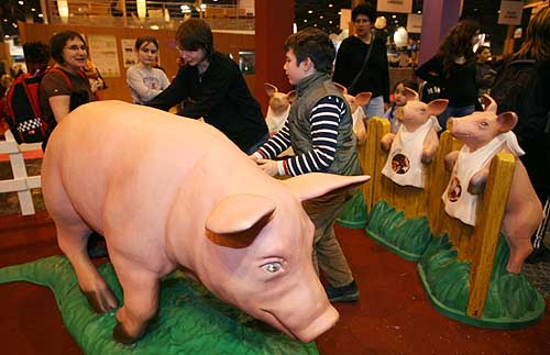 3日,在法國巴黎舉行的國際農業(yè)博覽會上,一個用豬模型布置的展臺吸引了不少觀眾。當天,為期9天的第44屆法國國際農業(yè)博覽會在巴黎凡爾賽門展覽中心開幕。法國國際農業(yè)博覽會始于1964年,是世界著名的大型農業(yè)博覽會之一,每年該博覽會的參觀人數(shù)都多達數(shù)十萬。