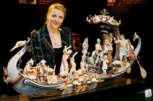 13日,在日本東京一百貨公司,西班牙雅致公司董事會成員瑪麗亞·拉德洛展示名為《尼羅河女王》的瓷擺件。這款擺件全球限量銷售100件,售價達1575萬日元(約合人民幣100萬元)。