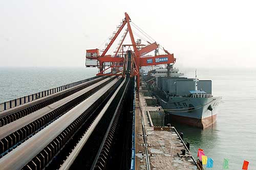 3月17日,一艘輪船停泊在秦皇島煤五期碼頭裝貨。當日,國家重點項目秦皇島港煤碼頭五期工程及河北省重點項目煤四期擴容工程通過了由交通部組織的國家驗收,正式投產(chǎn)。據(jù)了解,這兩項工程建設碼頭岸線總長達1700米,港口年通過能力達6500萬噸以上,規(guī)模之大,在中國和世界港口建設史上史無前例。