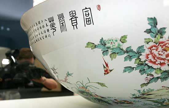 26日,一名電視記者在俄羅斯首都莫斯科舉行的媒體預(yù)展上拍攝景德鎮(zhèn)精品瓷器。3月27日,由江西承辦的“白色的金子——中國(guó)瓷器精品展”在莫斯科正式開展。這一展覽是俄羅斯舉辦的“中國(guó)年”文化展覽之一。