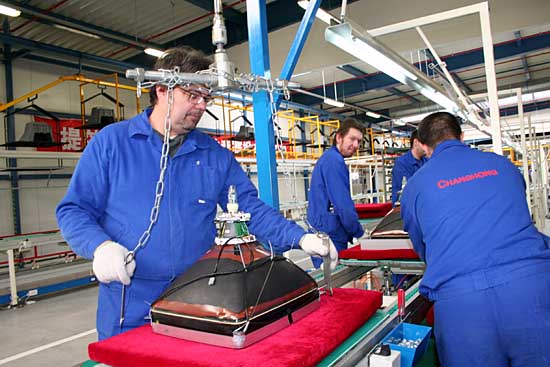 28日,在捷克寧布爾克市,中國長虹歐洲電器有限公司員工在調(diào)試電視機。當(dāng)天,中國長虹歐洲電器有限公司在捷克中部城市寧布爾克正式投產(chǎn)。這是長虹在歐洲最大的投資項目,也是中國家電企業(yè)在歐洲自主投資的第一個海外生產(chǎn)基地。