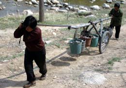 4月8日,河南省欒川縣合峪鄉(xiāng)的兩名村民用車(chē)?yán)。近期河南西部地區(qū)氣溫偏高,降雨偏少,給農(nóng)民的春耕生產(chǎn)帶來(lái)一定的困難。當(dāng)?shù)剞r(nóng)民采取提水、鋪保溫膜等多種方式抗旱,保證春耕生產(chǎn)順利進(jìn)行。