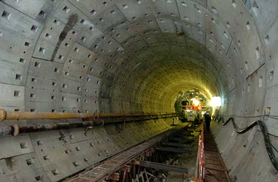 “萬(wàn)里長(zhǎng)江第一隧”——武漢長(zhǎng)江隧道正在順利推進(jìn),4月8日,一號(hào)隧道已累計(jì)掘進(jìn)318米,并安全從武九鐵路地下通過(guò)。預(yù)計(jì)將于今年6月份進(jìn)入長(zhǎng)江江底施工階段。武漢長(zhǎng)江隧道是萬(wàn)里長(zhǎng)江上的第一條全程過(guò)江公路隧道,隧道總長(zhǎng)約3630米,是一條左、右隧洞隔離的雙向4車(chē)道公路隧道。武漢長(zhǎng)江隧道2004年12月開(kāi)工,預(yù)計(jì)2008年底竣工通車(chē)。 |