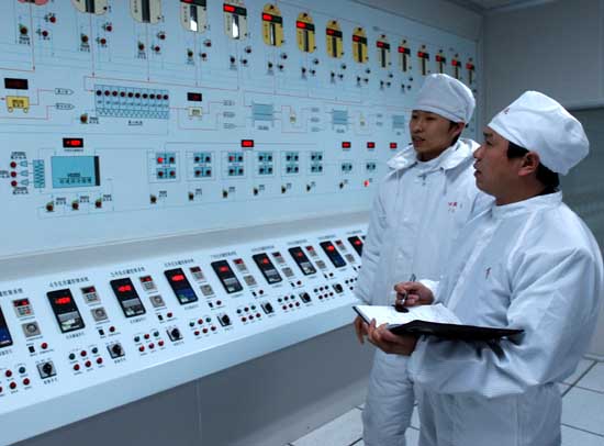 4月9日,遠(yuǎn)大蜀陽藥業(yè)的駐廠監(jiān)督員陳飛(右)檢查制藥流程模擬系統(tǒng)。四川近日正式啟動駐廠監(jiān)督員制度,派員定期或不定期對高風(fēng)險品種藥廠生產(chǎn)和質(zhì)量管理的各個環(huán)節(jié)進(jìn)行安全監(jiān)管,目前首批駐廠監(jiān)督員已進(jìn)駐了3家血液制品、疫苗生產(chǎn)企業(yè)。