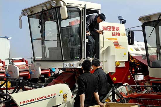 4月11日,農(nóng)戶正在銀川西部農(nóng)資城挑選農(nóng)機。2007年,中央和寧夏財政共安排2000萬元資金幫助農(nóng)民購置農(nóng)機,以提高寧夏全區(qū)農(nóng)機化裝備水平,農(nóng)機購置補貼極大地調(diào)動了農(nóng)民購買農(nóng)機具的積極性。
