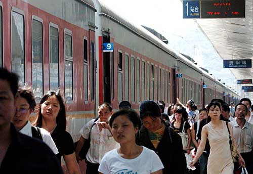 5月7日,一群旅游者在貴陽火車站準(zhǔn)備登車返回廣州。隨著五.一“黃金周”的結(jié)束,全國航空、鐵路、公路等都迎來游客退潮高峰。