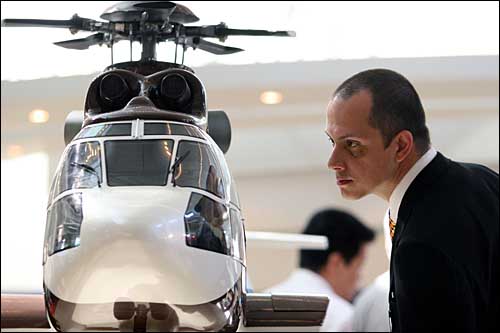 5月17日,一位參觀者觀看警用直升機(jī)模型。當(dāng)日,第二屆中國(北京)國際警用裝備及反恐技術(shù)裝備展覽會(huì)在北京展覽館開幕。警用裝甲車、新式反恐裝備等展品令觀眾大開眼界。