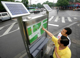當(dāng)日,北京東城區(qū)環(huán)衛(wèi)局新設(shè)立的太陽能公廁指示牌在景山前街投入使用。這種指示牌采用太陽能供電,夜晚自動(dòng)點(diǎn)亮,遇到陰天也能正常使用兩到三天。