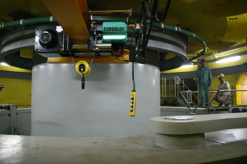 6月11日,工程技術(shù)人員在對率先投入運(yùn)營的22號(hào)機(jī)組進(jìn)行監(jiān)測。當(dāng)日,三峽工程右岸電站首臺(tái)機(jī)組——22號(hào)機(jī)組經(jīng)過一個(gè)多月的調(diào)試運(yùn)行,正式并網(wǎng)發(fā)電,投入運(yùn)營。這標(biāo)志著三峽三期工程開始發(fā)揮效益。 | |