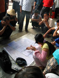 6月12日,在海南省定安縣最繁華的解放路上,“私彩”攤販在講授購買彩票秘訣。