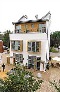這也是英國第一座將來能夠大規(guī)模推廣的生態(tài)住宅,其環(huán)保設(shè)計(jì)能減少80%的燃料費(fèi)開支,每年可為住戶節(jié)約能源費(fèi)開支800英鎊。英國政府有規(guī)定,購買售價(jià)為12.5萬~25萬英鎊的不動(dòng)產(chǎn),消費(fèi)者需繳納大約1%的印花稅。但如果花20萬英鎊購買類似生態(tài)住宅,就可免繳2000英鎊的印花稅。 候任英國首相戈登·布朗上周也宣布,英國計(jì)劃將推出2000套類似的生態(tài)住宅。 公司總裁斯圖亞特·米爾恩表示:“這是未來5年內(nèi)能大規(guī)模推廣到市場的原創(chuàng)性生態(tài)住宅。而該住宅一旦大規(guī)模推廣,這種建筑就可能被授予‘六星級(jí)’最高星級(jí)的認(rèn)證!边@座生態(tài)住宅的造價(jià)還不清楚。但公司方面稱,其成本不會(huì)高于傳統(tǒng)的磚式或鋼筋混凝土式住宅。 |
