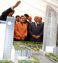 吳儀與莫斯科市長盧日科夫參觀項(xiàng)目模型