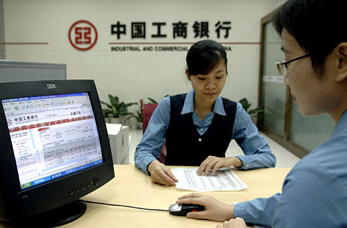 7月16日,中國工商銀行?诃偺┲泄ぷ魅藛T在為客戶辦理國債業(yè)務(wù)。財政部于當(dāng)日起發(fā)行總規(guī)模為383.8億元的2007年第十一期記賬式國債。本期國債為固定利率附息債,期限3年,經(jīng)投標(biāo)確定的票面年利率為3.53%。