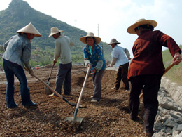 8月7日,廣西平果縣果化鎮(zhèn)群眾在修建縣級(jí)公路。