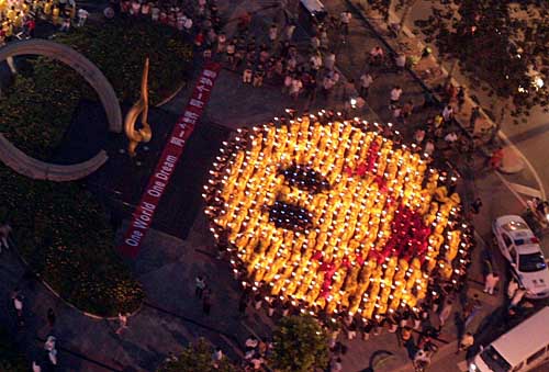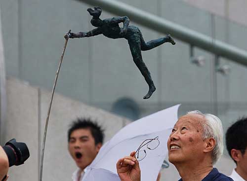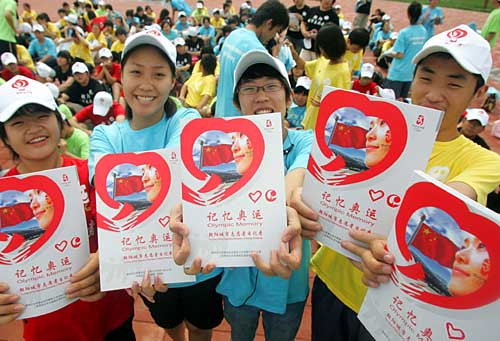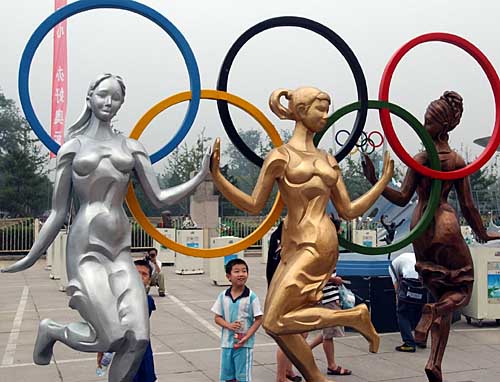 人們以各自不同的方式慶祝北京奧運會倒計時一周年。新華社發(fā)