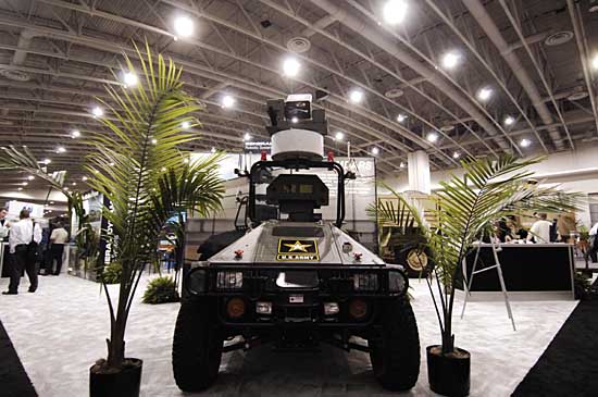 7日,在美國華盛頓會(huì)議中心,通用動(dòng)力公司展出該公司研發(fā)生產(chǎn)的一種無人巡邏車。2007年北美無人駕駛系統(tǒng)展覽在此中心舉行,292家參展商帶來了涉及無人駕駛系統(tǒng)60個(gè)技術(shù)層面的參展品。