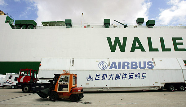 | 8月9日,由我國(guó)生產(chǎn)的首個(gè)空中客車A319飛機(jī)機(jī)翼翼盒在上海港裝船起運(yùn)。將安裝于空客A319飛機(jī)的這個(gè)機(jī)翼翼盒是迄今為止我國(guó)航空企業(yè)生產(chǎn)的尺寸最大、結(jié)構(gòu)最復(fù)雜、技術(shù)含量最高的飛機(jī)部件之一。 | |