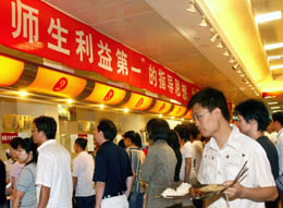 這是9月13日在上海交通大學(xué)食堂內(nèi)拍攝的購(gòu)餐場(chǎng)面。近日,上海多所高校已停止或限制發(fā)售一次性餐券或飯菜票,而統(tǒng)一使用校園卡購(gòu)餐。據(jù)了解,新學(xué)期為了穩(wěn)定食堂的飯菜價(jià)格,各高校都拿出了大量補(bǔ)貼,但學(xué)校周邊的居民或社會(huì)人員經(jīng)常在學(xué)校餐廳“蹭飯”,奪走了學(xué)生應(yīng)該享受到的一部分福利,因此各高校紛紛采取拒絕和限制措施。