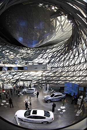 這張17日在德國慕尼黑拍攝的照片顯示的是“寶馬世界”汽車交付中心的內(nèi)部。位于德國寶馬汽車公司總部旁的“寶馬世界”汽車交付中心當(dāng)日舉行落成典禮,并將在20日和21日對公眾開放。