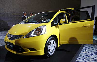 這是18日在東京舉行的發(fā)布會上拍攝的經(jīng)過改進(jìn)的小型車飛度(FIT)。據(jù)介紹,新型飛度共有排氣量1300cc和1500cc兩款,售價分別為119.7萬日元(1美元約合116日元)和157.5萬日元,本田公司在日本國內(nèi)每月銷售目標(biāo)為1.2萬輛。
