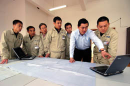 老工業(yè)基地哈爾濱市加快推進(jìn)新型工業(yè)化進(jìn)程,正在改變過去“雁南飛”、“雁外飛”的人才外流現(xiàn)象,吸引了越來越多的人才回鄉(xiāng)創(chuàng)業(yè)。歸國華僑、青年企業(yè)家尚宇參與創(chuàng)辦的哈爾濱四海集團(tuán)是一家創(chuàng)新型高科技僑屬企業(yè),擁有自主知識產(chǎn)權(quán)成果30余項,平均每季度都會創(chuàng)造出一種填補(bǔ)國內(nèi)空白的新產(chǎn)品。目前,該企業(yè)生產(chǎn)的智能機(jī)器人、數(shù)控機(jī)床和自動化生產(chǎn)線,全部擁有自主知識產(chǎn)權(quán),替代進(jìn)口產(chǎn)品并遠(yuǎn)銷新加坡、馬來西亞、俄羅斯等十幾個國家。圖為年僅33歲的尚宇(右二)帶領(lǐng)著科研人員在進(jìn)行新產(chǎn)品研發(fā)。 |