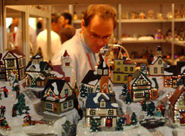 10月25日,一位外國(guó)采購(gòu)商在觀看圣誕飾品。