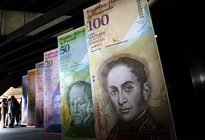 24日,人們在委內瑞拉中央銀行參觀新版貨幣強勢玻利瓦爾的宣傳畫。委內瑞拉央行計劃從2008年1月1日起正式啟用強勢玻利瓦爾。1強勢玻利瓦爾等于1000現(xiàn)行玻利瓦爾。今年10月,委內瑞拉已經開始實行玻利瓦爾和新貨幣強勢玻利瓦爾的雙軌標價。