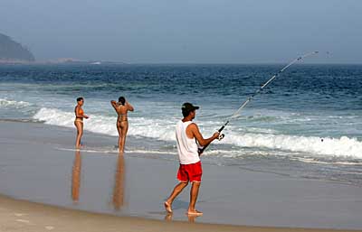 10月30日,一名男子在巴西里約熱內(nèi)盧的海灘釣魚。盡管這里還處在春季,但溫暖舒適的天氣使得當(dāng)?shù)鼐用褚呀?jīng)提前享受到充滿陽光的海灘生活。