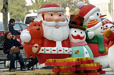 11月23日,市民在南京新街口街頭擺放的圣誕裝飾旁休息。距離圣誕節(jié)還有一個月,南京新街口商業(yè)區(qū)的商店已開始在店外街頭布置圣誕裝飾物,以營造氣氛吸引顧客。