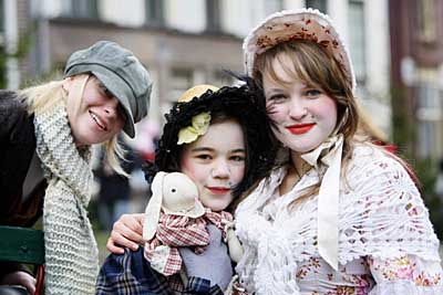 15日,幾名女孩打扮成英國作家查爾斯·狄更斯小說中的人物走在荷蘭代芬特爾的街頭。當天,人們穿上狄更斯筆下人物的服裝參加周末在代芬特爾舉辦的“狄更斯節(jié)”。
