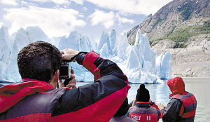 游客在智利一個(gè)國(guó)家公園拍攝即將消失的冰川。 | 本報(bào)綜合報(bào)道