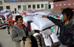 12月27日,西藏達孜縣達杰鄉(xiāng)農民次央(左)等準備向食品公司出售青稞。