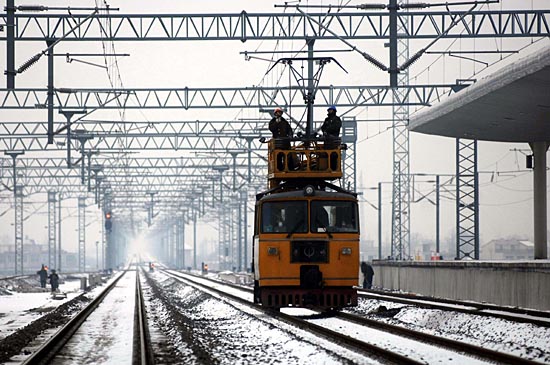 1月15日,中鐵四局冷滑機(jī)車在合寧高速鐵路上進(jìn)行電力接觸網(wǎng)測試。近日,中鐵四局對高鐵電力接觸網(wǎng)進(jìn)行通車前的不帶電“冷滑”和帶電的“熱滑”機(jī)車測試,以確保動車組安全上線。