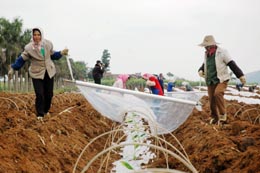 1月24日,廣西南寧市隆安縣金穗農(nóng)場的農(nóng)民正在為香蕉幼苗鋪設(shè)保溫膜。 目前,罕見嚴(yán)寒給廣西熱帶、亞熱帶農(nóng)作物的生長帶來嚴(yán)峻考驗,廣西近年大力推廣的農(nóng)作物“三避技術(shù)”(避雨、避寒、避曬)發(fā)揮了重要作用,通過搭建避寒拱棚農(nóng)膜、地表栽培地膜等方式,使500多萬畝農(nóng)作物免受寒凍。 |