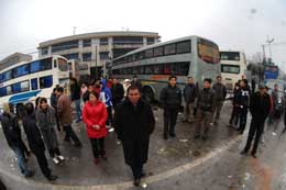 1月27日,滯留旅客在京珠高速公路湘潭馬家河收費(fèi)站等待通車。 受連日南方特大冰凍災(zāi)害影響,京珠高速湖南段車輛滯留嚴(yán)重。至1月26日12時(shí),滯留車輛超過(guò)2萬(wàn)輛,滯留人員超過(guò)6萬(wàn)。除了惡劣的天氣外,還有一個(gè)重要原因就是鄰近一些省區(qū)的高速公路相繼封閉,車輛進(jìn)入湖南后無(wú)法出去。至記者發(fā)稿時(shí),車輛滯留形勢(shì)仍非常危急。 |