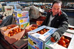 2月18日,寧夏賀蘭縣立崗鎮(zhèn)蔬菜基地菜農(nóng)馬云愧正在銀川北環(huán)蔬菜批發(fā)市場(chǎng)銷售西紅柿。 連日來,隨著銀川市各主要蔬菜種植基地災(zāi)后生產(chǎn)恢復(fù)正常,加上公路交通運(yùn)輸?shù)臅惩,銀川市各蔬菜批發(fā)市場(chǎng)貨源充足,價(jià)格開始平穩(wěn)回落,西紅柿、黃瓜、西芹、豆角兒等常見蔬菜價(jià)格較春節(jié)期間下降20%以上。 |