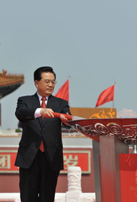 胡錦濤親手點(diǎn)燃圣火盆
