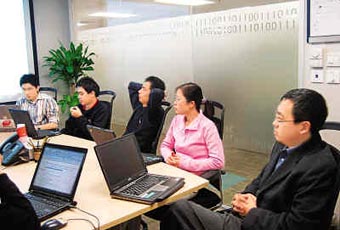 here”。 “而你的電腦里也有你個人工作日程提醒!彼钢覒阎械墓P記本說,“通過微軟的Office系統(tǒng),大家可以建立與郵件系統(tǒng)相連的日程表,如果某個員工的工作安排有變,只要發(fā)送郵件,就可即時在相關人員的日程表中反映出來! 作為微軟全球研發(fā)戰(zhàn)略布局中的重要一環(huán),中國區(qū)的員工還要經(jīng)常與雷德蒙(微軟美國總部)進行密切的聯(lián)系。為提高工作效率,各種高科技的即時通訊工具,諸如及時通訊軟件、電話會議、視頻會議等等,在這里應用猶如家常便飯。 在景陽的辦公室里,我第一眼看到的就是立在墻邊的一個睡墊。 “這陣子工作忙,每天要工作18個小時。有睡墊,在辦公室就可以把休息問題解決了。”景陽說。 這就是“微軟節(jié)奏”!