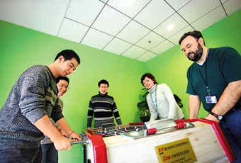 體驗期間的一天中午,我去茶水間沖咖啡,一個熟悉的身影擋在我的面前,藍襯衫、黑西裝、短頭發(fā)——他就是微軟中國研發(fā)集團的主席張亞勤,早在2006年第一次采訪他時,我就知道他喜歡喝黑咖啡。 在微軟中國研發(fā)集團,張亞勤是當之無愧的靈魂人物。以致在這幾天的體驗中,我極力想弄清楚,今時今日的微軟中國,哪些是張亞勤的烙印。 與參加各種公眾活動時記者面前那個帶有光環(huán)的張亞勤不同,我現(xiàn)在面對的張亞勤是可以和實習生張霄在桌式足球場上并肩奮戰(zhàn)、贏球后興奮地擊掌表示祝賀的“大男孩”。 我自然也被允許輕松地光顧他的辦公室——他一天至少有1/3的時間是在這里度過的。 乍一看,他的辦公室過于簡約:墻上幾乎不掛任何東西。最顯眼的,就是靠北墻桌上的兩排黑色的小方磚了——這就是傳說中的專利證明,數(shù)一數(shù),有15塊,這只是他專利發(fā)明中的一小部分。 圓弧形的大辦公桌上,擺著四臺電腦。而最珍貴的,則是桌上一字排開的三幅照片,分別是張亞勤和胡錦濤、蓋茨以及家人的合影。 “這是我的3個老板,國家的、公司的、家里的!彼矚g這樣說。 最初,張亞勤應邀加盟微軟時,很多人都認為,“微軟又挖來一個杰出的技術人才”。事實的確如此,無論他本人,還是因為他而凝聚起來的一批技術精英,為微軟的技術研發(fā)貢獻了不可或缺的東方智慧。事實上,僅在Vista等旗艦產品中,由中國團隊研發(fā)的功能就超過100多項。 不過,出乎許多人意外的是,除技術之外,在市場、管理、公共關系等諸方面,張亞勤日益顯現(xiàn)出難以替代的價值。