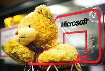 裝飾辦公桌的可愛熊公仔——這樣的玩具在微軟中國研發(fā)集團里隨處可見。 |