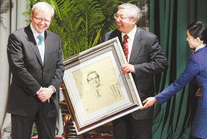 4月9日,澳大利亞總理陸克文在北京大學(xué)用中文發(fā)表演講,并回答了北大學(xué)生的提問。演講后,北京大學(xué)校長許智宏向陸克文贈(zèng)送了北大教師為他作的畫像。趙青