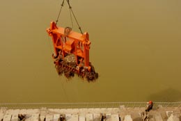 河南三門峽大壩工人清污忙