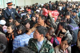 5月7日,乘坐A45次列車的旅客在檢票進(jìn)站。隨著水稻插秧季節(jié)的到來(lái),哈爾濱東站自5月4日起至16日加開A45、A69次臨時(shí)客車。據(jù)介紹,這兩列臨時(shí)客車主要運(yùn)送去往虎林、建三江、前進(jìn)鎮(zhèn)方向的“插秧大軍”,兩個(gè)車次每日可加送外出務(wù)工人員2000余人次。