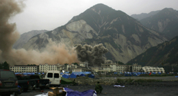 汶川縣映秀鎮(zhèn)開始爆破拆除危房