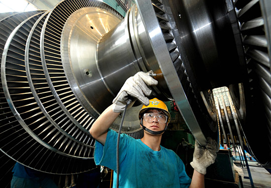 6月9日,四川東江汽輪機(jī)廠德陽分廠的工人在生產(chǎn)電力設(shè)備。受地震影響,四川一些工業(yè)企業(yè)的生產(chǎn)設(shè)施、設(shè)備遭受較大損失。目前,各企業(yè)積極開展生產(chǎn)自救,部分企業(yè)已陸續(xù)恢復(fù)生產(chǎn)。