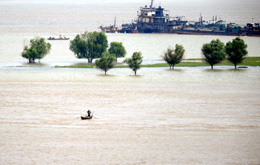 江西受災(zāi)人口擴大到387萬,防汛應(yīng)急響應(yīng)由二級調(diào)整為三級。6月16日,一小船在高水位的贛江南昌段劃行。